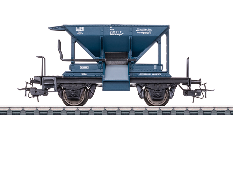Předloha: Výsypný vůz jako železniční servisní vozidlo typu Talbot DB. Oceánově modré zbarvení. Provozní stav konec 80. let. Model: Vykládací klapky se otevírají ruční pákou. Spřáhla Relex. Balení v oranžovém provedení Primex. Výměnu dvojkolí za izolovaná DC E700500 provedeme zdarma. Nevhodné pro děti do 15 let.