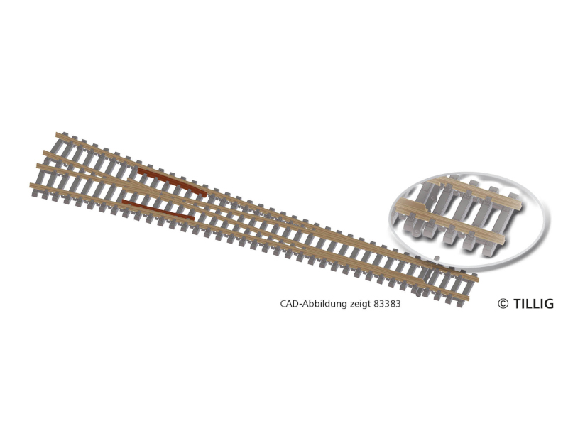 výhybka levá EW2 15° betonové pražce Tillig 83334