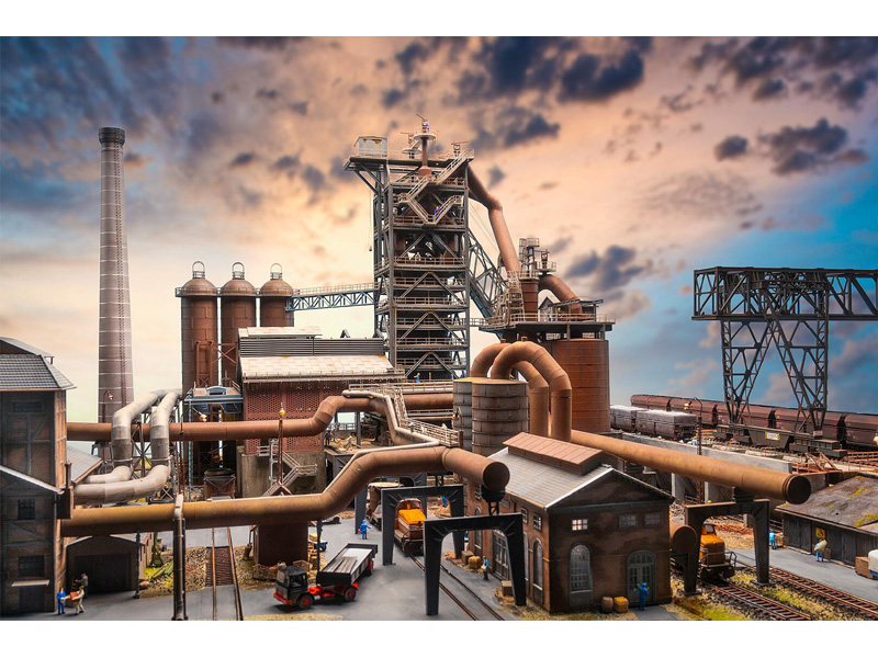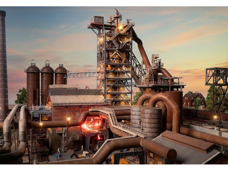 Stavebnice velmi detailně propracované slévárny ocele s vysoko pecí. Rozměry: 695 x 450 x 545 mm. Úroveň obtížnosti: náročná. Nevhodné pro děti do 15 let.