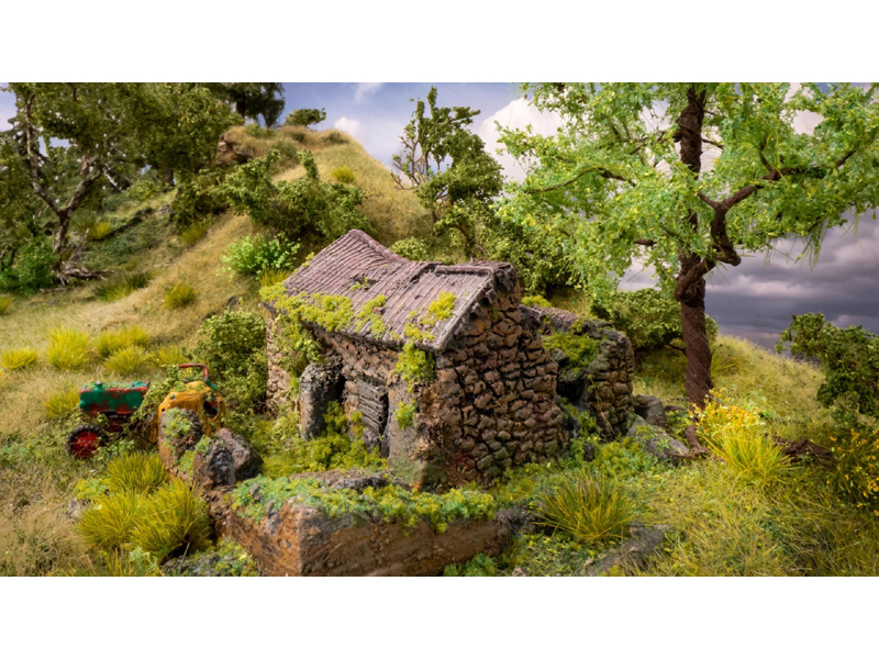 Rozměry: 16,5 x 12,1 x 6,5 cm. Součástí balení je lípa o výšce 16 cm a zrezivělý traktor. Určeno pro velikost H0. Nevhodné pro děti do 15 let.