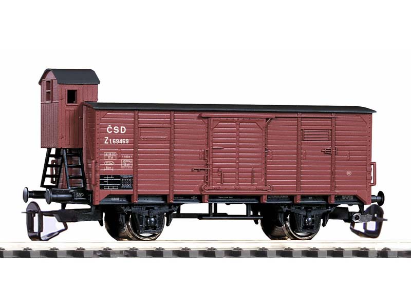 Detailně provedený model zavřeného vozu ČSD s brzdařskou budkou. Minimální poloměr oblouku je 310 mm. Není vhodné pro děti do 14 let.