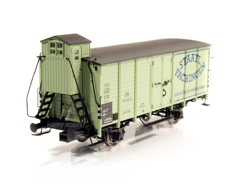 Limitovaná edice. Rám vozu vyroben přesně podle předlohy. Přesná reprodukce mezer mezi prkny. Kovová dvojkolí. Vícedílný brzdový systém. Extra dosazené držáky koncových návěstí. Brzdové čelisti v rovině kola. Prolomené vzpěry skříně vozu. Precizní potisk a lakování. Extra dosazené kryty nápravových ložisek. Kinematika krátkého spřáhla podle normy NEM. Provozní číslo 576 687 [P]. Určeno pro uživatele starší 15 let.