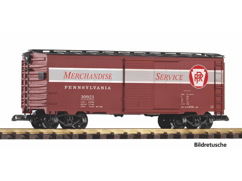 Zavřený nákladní vůz v barvách americké společnosti Pennsylvania Railroad. Robustní konstrukce, vynikající jízdní vlastnosti. Minimální poloměr oblouku 600 mm. Není vhodné pro děti do 14 let.