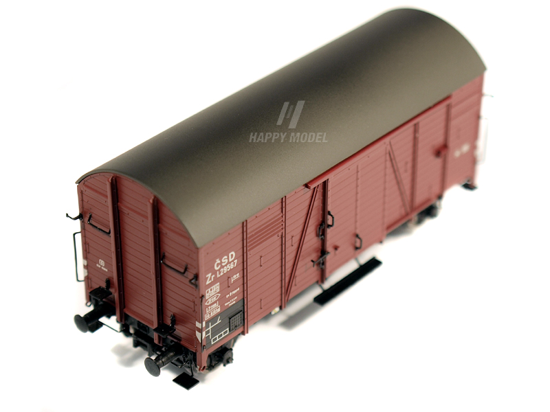 Kovová ložiska dvojkolí. Tříbodové uložení. Věrně reprodukovaná, trojrozměrná konstrukce rámu. Samostatně aplikované kryty nápravových ložisek. Brzdové čelisti v rovině kola. Brzdové čelisti v rovině kola. Extra dosazený brzdový systém, madla, pakety listových per, stupačky. Prolomené podpěry rámu vozu. Provozní číslo 1.29567. Určeno pro uživatele starší 15 let.