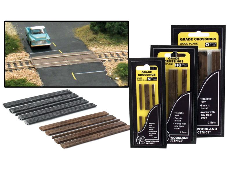 Realisticky vypadající a připravený k přímé montáži. Ocelové desky, lisované vstřikováním jsou opatřeny zářezy pro upevňovací šrouby kolejnic. Sada obsahuje i plastové, předem nařezané podložky pro správné nastavení výšky přejezdových desek. Délka přejezdu 70 mm, šířka vnitřní desky 13,5 mm, šířka vnějších desek 7 mm. V jednom balení je materiál na dva přejezdy.